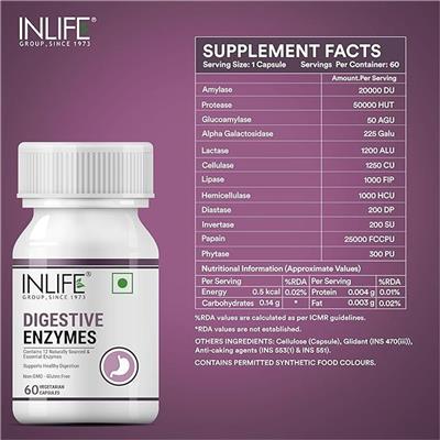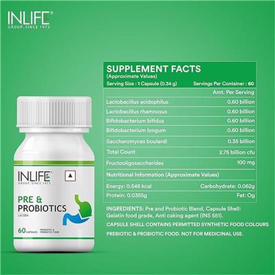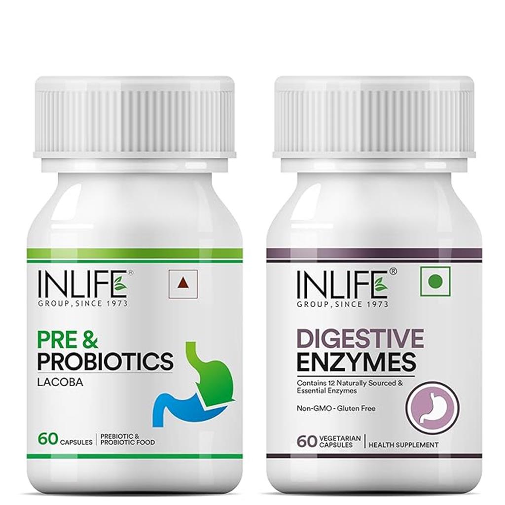 INLIFE Probiotics with Digestive Enzymes | Prebiotics and Probiotics Supplement Contains 12 Naturally Sourced & Essential Enzymes | Supports Healthy Digestion - 60 Capsules Each About this item Pre & Probiotics Digestive Enzymes