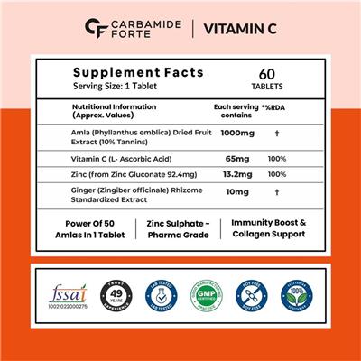 ✅𝟏𝟎𝟎% 𝗡𝗔𝗧𝗨𝗥𝗔𝗟 𝗩𝗜𝗧𝗔𝗠𝗜𝗡 𝗖 𝗙𝗥𝗢𝗠 𝗔𝗠𝗟𝗔 𝗘𝗫𝗧𝗥𝗔𝗖𝗧 : Our Vitamin C tablets with zinc for immunity gives Vitamin C from 1000mg 100% Pure & Natural source of Amla. ✅𝗜𝗠𝗠𝗨𝗡𝗜𝗧𝗬 𝗕𝗢𝗢𝗦𝗧𝗘𝗥 𝗩𝗜𝗧𝗔𝗠𝗜𝗡 𝗖 𝗪𝗜𝗧𝗛 𝗭𝗜𝗡𝗖 : Vitamin C & Zinc in our vitamin c and zinc tablets for immunity may help you build your immunity, Vitamin C also may help skin glow and acts as a collagen builder. ✅ 𝗭𝗜𝗡𝗖 𝗚𝗟𝗨𝗖𝗢𝗡𝗔𝗧𝗘 𝗜𝗦 𝟑𝗫 𝗕𝗘𝗧𝗧𝗘𝗥 𝗔𝗕𝗦𝗢𝗥𝗕𝗘𝗗 𝗧𝗛𝗔𝗡 𝗭𝗜𝗡𝗖 𝗦𝗨𝗟𝗣𝗛𝗔𝗧𝗘 : Our immunity tablets for adults contain Zinc Gluconate instead of Zinc Sulphate. Zinc is a tricky mineral when it comes to absorption by your body. Don’t settle for the Zinc Sulphate given by other vitamin C capsules. Your body absorbs ZINC GLUCONATE 3 TIMES MORE THAN ZINC SULPHATE ✅𝗖𝗢𝗟𝗟𝗔𝗚𝗘𝗡 𝗕𝗨𝗜𝗟𝗗𝗘𝗥 𝗙𝗢𝗥 𝗛𝗔𝗜𝗥, 𝗦𝗞𝗜𝗡 & 𝗡𝗔𝗜𝗟 𝗛𝗘𝗔𝗟𝗧𝗛 : By using our immunity supplement for men and women you’re strengthening your ability to absorb and utilize more Collagen. Vitamin C in our vitamin c tablets for skin is an essential nutrient for collagen synthesis. Collagen is well known for its benefits including hair skin & nail health as well as Joint health. ✅ 𝗩𝗜𝗧𝗔𝗠𝗜𝗡 𝗖 𝗦𝗨𝗣𝗣𝗟𝗘𝗠𝗘𝗡𝗧 𝗙𝗢𝗥 𝗬𝗢𝗨𝗡𝗚𝗘𝗥 𝗦𝗞𝗜𝗡 𝗚𝗟𝗢𝗪, 𝗚𝗥𝗔𝗖𝗘𝗙𝗨𝗟 𝗔𝗚𝗜𝗡𝗚 & 𝗔 𝗣𝗘𝗥𝗙𝗘𝗖𝗧 𝗔𝗖𝗡𝗘 𝗦𝗨𝗣𝗣𝗟𝗘𝗠𝗘𝗡𝗧 : Our Concentrated Vitamin C immunity booster tablet for adults is great for supporting skin health. Vitamin C can give your skin a lifted, more youthful look. Vitamin C also works to protect cells from oxidative stress and bacteria.