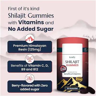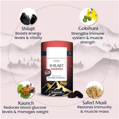 Simplify Your Wellness Journey with Kindly's Shilajit Gummies! Forget the hassle of sourcing and diluting complex shilajit resin. Revitalise your routine with the goodness of premium shilajit sourced from 1800 ft in the Himalayas. Enriched with 4 essential vitamins and boasting zero added sugar, these gummies offer a tasty berry flavor and a potent blend to fuel your strength, stamina, and vigour. Experience the convenience of wellness in every bite!
