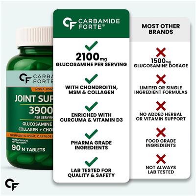 (1) OUR JOINT SUPPORT SUPPLEMENT CONTAINS EXTRA STRENGTH INGREDIENTS – Glucosamine 1800 mg, Chondroitin 450 mg, MSM 1005 mg per serving for better joint health, range of motion and comfort. Our Glucosamine Tablets helps rebuild and maintain joint flexibility and ease discomforts that come with age, weight, or sports related stress. (2) PROTECT & RESTORE JOINT CARTILAGE – Our joint pain tablets are designed with a potent combination of Glucosamine Chondroitin complex with MSM, which have been backed by science has shown to help prevent degeneration & restore joint cartilage. (3) RELIEVE JOINT PAIN & STIFFNESS - Our Glucosamine chondroitin msm tablets have powerful anti-inflammatory properties of MSM, Curcuma Longa & Boswellia Serrata aid in reducing joint pain & stiffness while improving overall mobility.