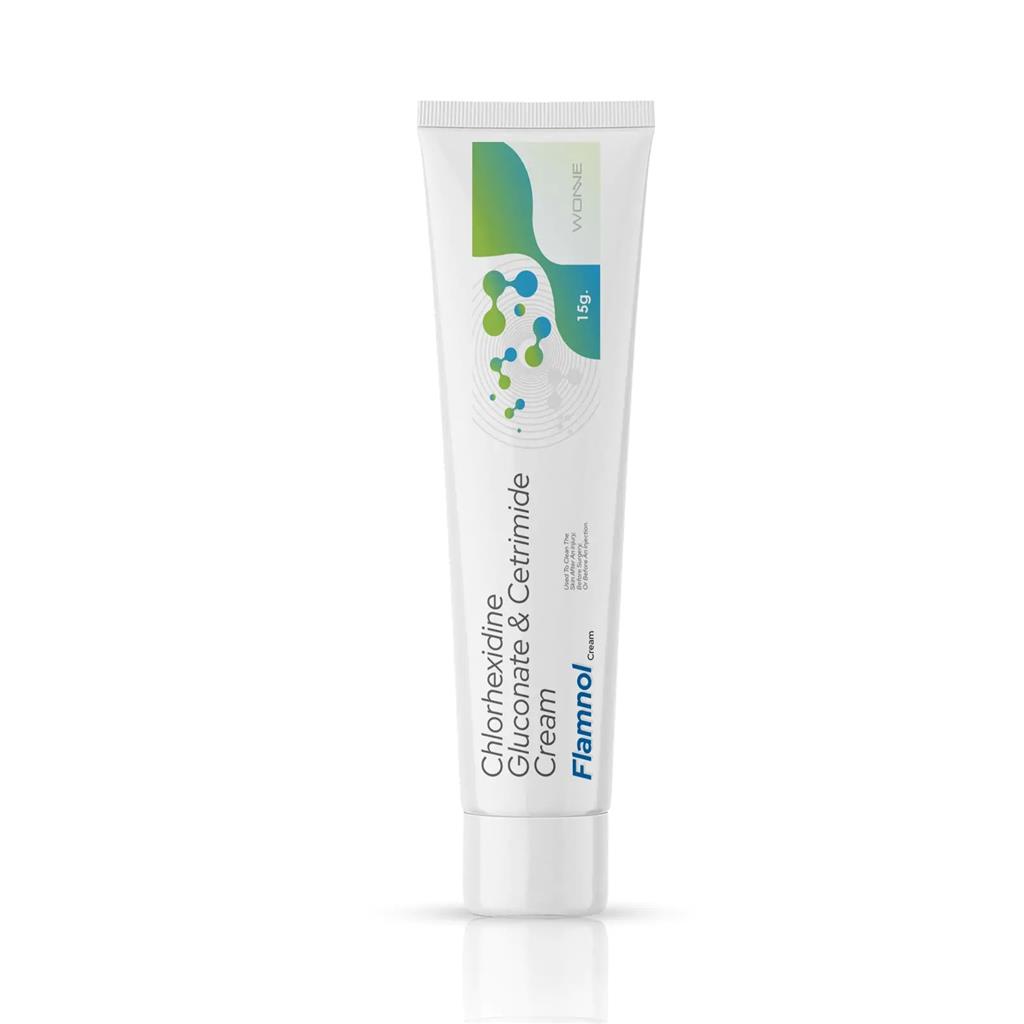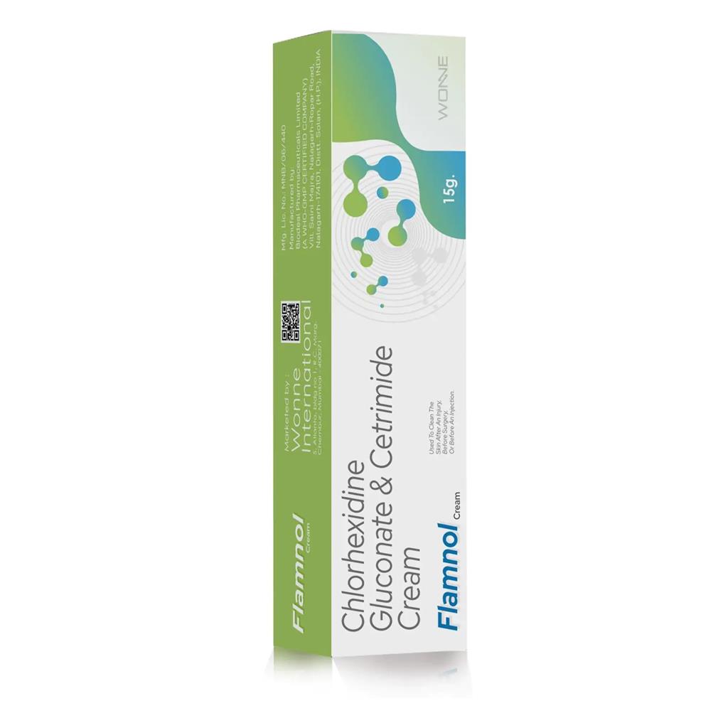 Flamnol Cream – Effective Cleaning, Reliable Protection –Triple protection for Healing power. Flamnol Cream – The Triple combination of chlorhexidine gluconate & cetrimide cream is belongs to anti-viral drug which is used to kill infectious microorganism s and effectively clean out cuts and wounds.Chlorhexidine is a broad-spectrum antiseptic that acts primarily by disrupting the cell membrane of microorganisms and binds to the negatively charged bacterial cell wall, causing the cell membrane to become more permeable which is primarily used for disinfection and sterilization of wounds, cuts, or surgical sites. It helps reduce microbial load and prevents infection.