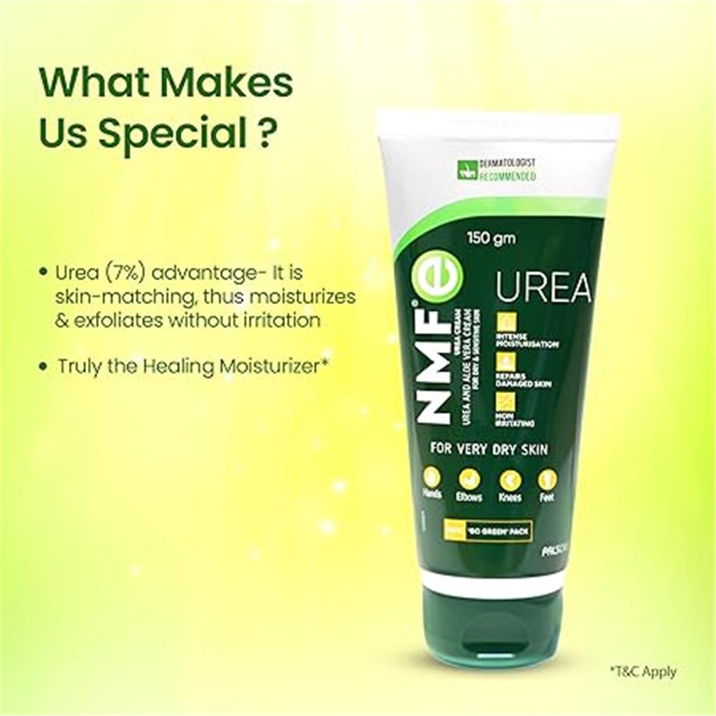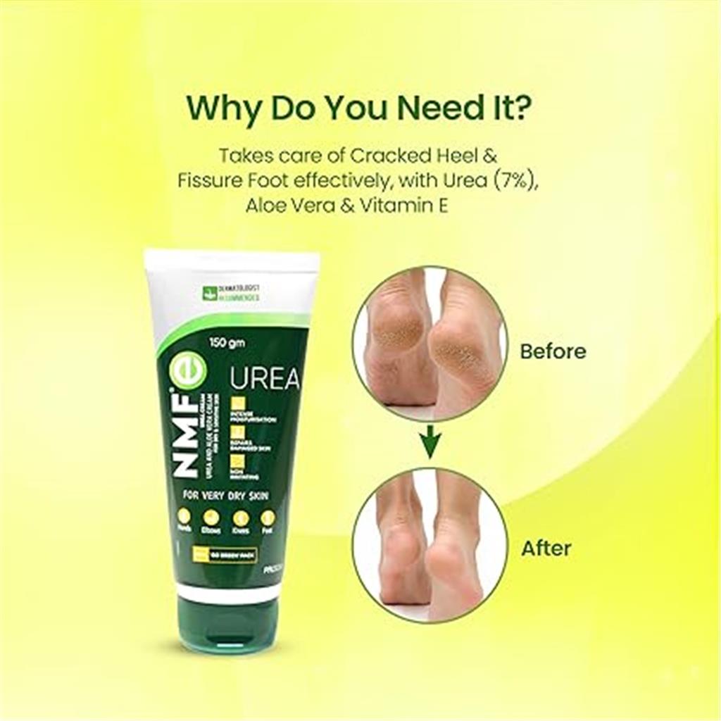 About this item NMFe Urea Cream is an Intense Moisturising Cream is specifically formulated for especially thick & dry skin areas, like soles of feet and palms of hands. Very important, not only moisturises but also helps remove the dead skin cells, without causing any irritation. Takes Care of Cracked Heels & Fissure Feet effectively, with Urea (7%) Aloe-Vera & Vitamin E. Urea (7%) Advantage - Urea 7% is skin matching, thus moisturises & exfoliates without irritation. Truly the Healing Moisturiser. Added Benefits of Aloe Vera & Vitamin E Best time to use - Within 3 mins post-bathing & at bed time after washing feet.