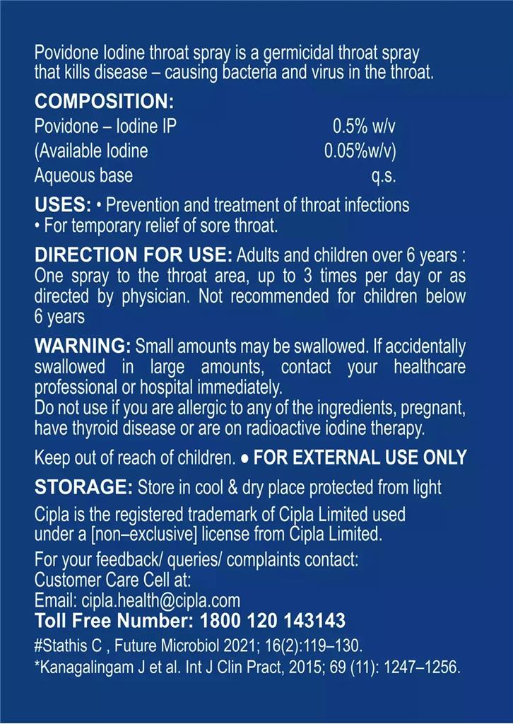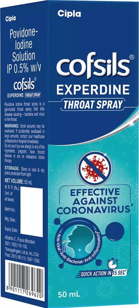 Cofsils Throat spray is made with Povidone Iodine - which is trusted by experts for over 60 years. The Spray effectively kills 99.9% bacteria & virus in the throat - Including Coronavirus. The convenient format makes it easy for you to carry this added protection anywhere, anytime. Dosage: Adults & Children over 6 years - 1 spray to the throat area up to 3 times per day or as directed by physician
