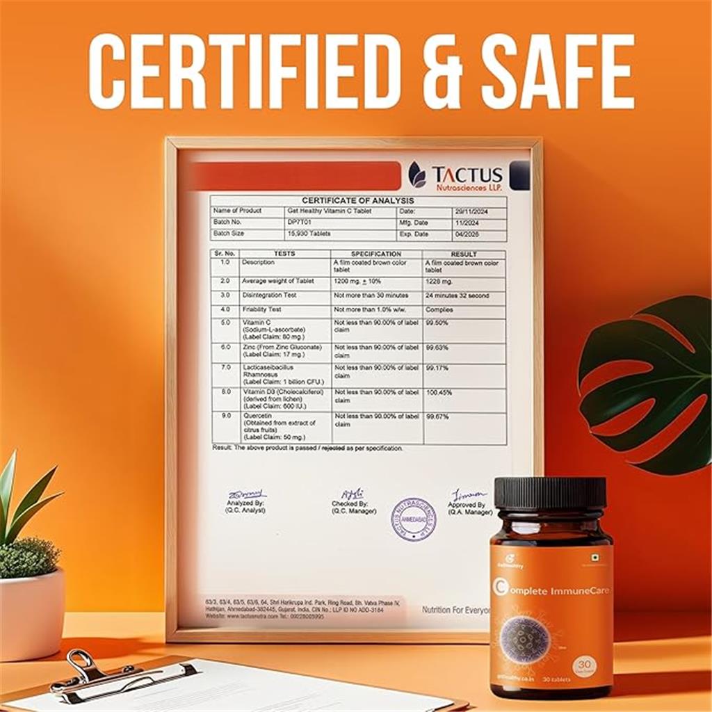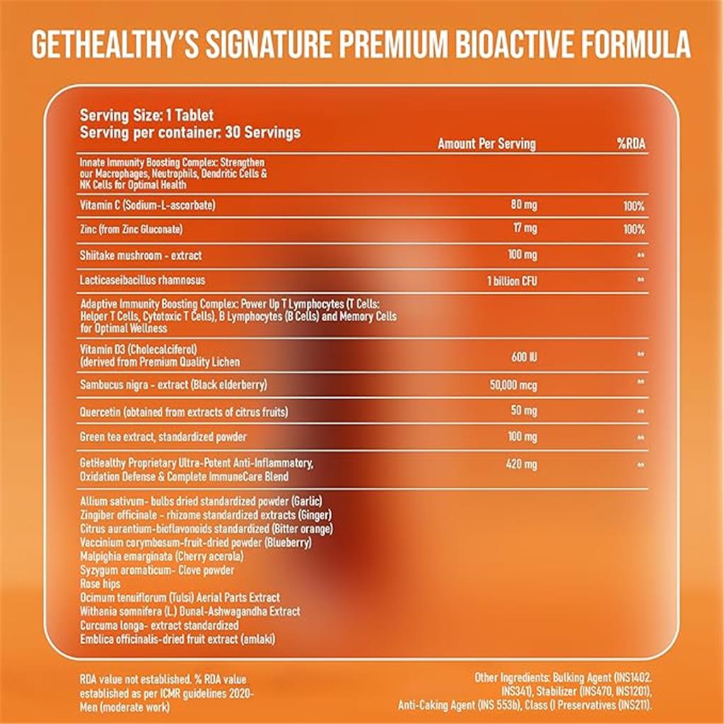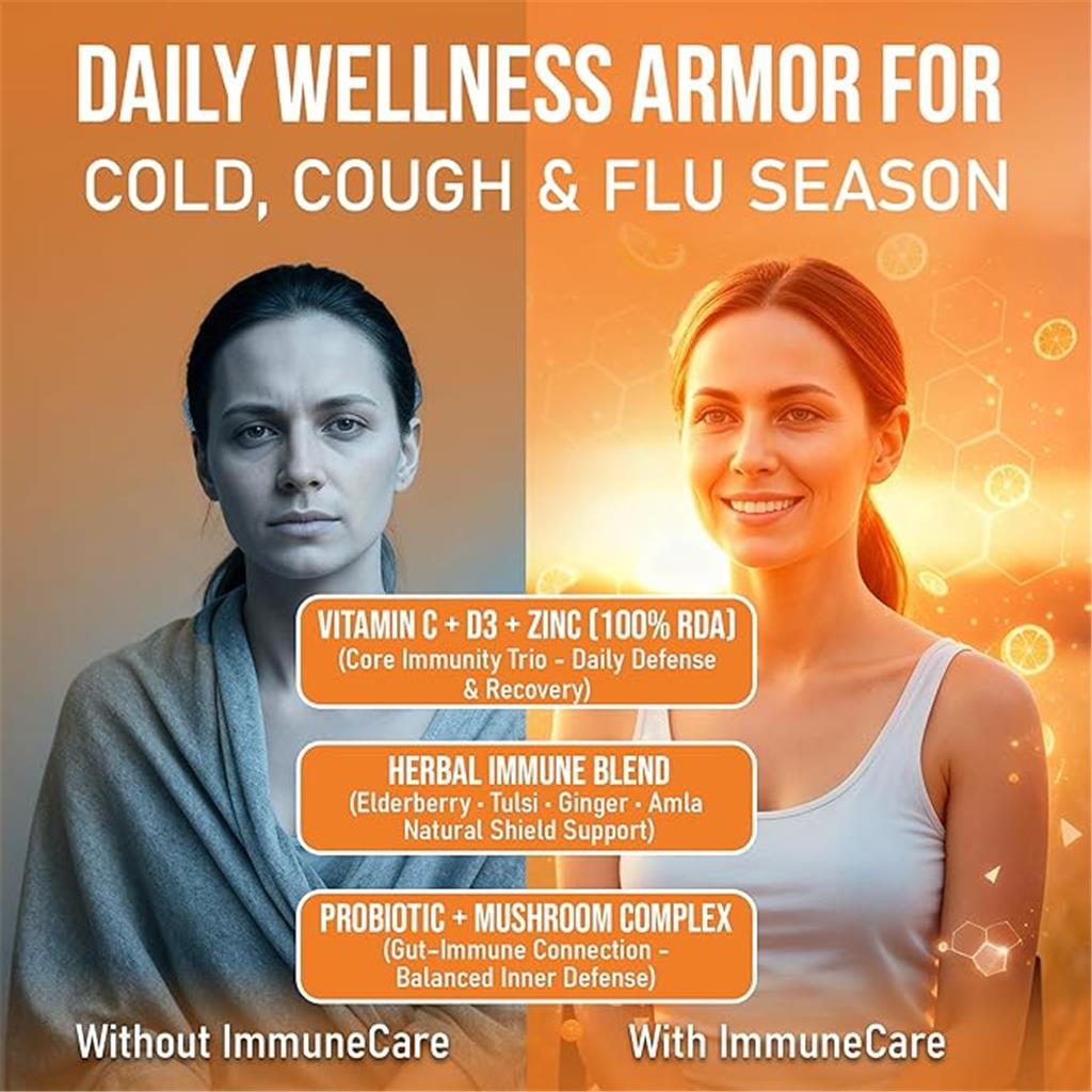 About this item EXP DATE: APRIL 30, 2026: Fresh batch with a long shelf life. Store in a cool, dry place to preserve potency. Designed for both men and women. INNATE IMMUNE SYSTEM SUPPORT WITH VITAMIN C & ZINC: Clinically-backed doses of Vitamin C, Zinc, Shiitake mushroom, and probiotics help activate macrophages, neutrophils, and NK cells to strengthen first-line immune defense. ADAPTIVE IMMUNE BOOST WITH VITAMIN D3, ELDERBERRY & QUERCETIN: Supports T cells, B cells, and memory cell response with Vitamin D3, elderberry, green tea extract, and citrus-based quercetin for full-spectrum immune resilience. ANTI-INFLAMMATORY AND OXIDATIVE DEFENSE COMPLEX: Turmeric, garlic, ginger, and bitter orange extracts help manage inflammation, fight oxidative stress, and promote immune balance without overstimulation. HERBAL BLEND WITH TULSI, AMLA & ASHWAGANDHA: Traditional Ayurvedic herbs including amla, ashwagandha, tulsi, and rose hips nourish long-term wellness, energy, and stress resilience.